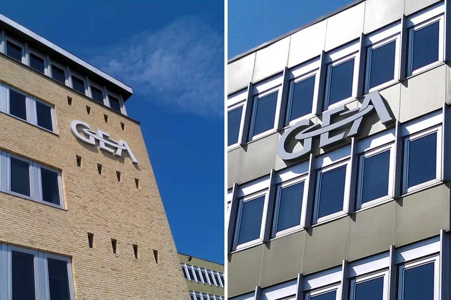 Da GEA skulle have nyt facadeskilt til hovedsædets kontorbygning, var opgaven klar: stort, præcist og med maksimal synlighed. Vi producerede imponerende facadebogstaver i størrelsen 3,5 x 1 meter, fræset direkte ud i massive aluminiumsplader – med den karakteristiske cirkel integreret elegant i GEA-logoet.