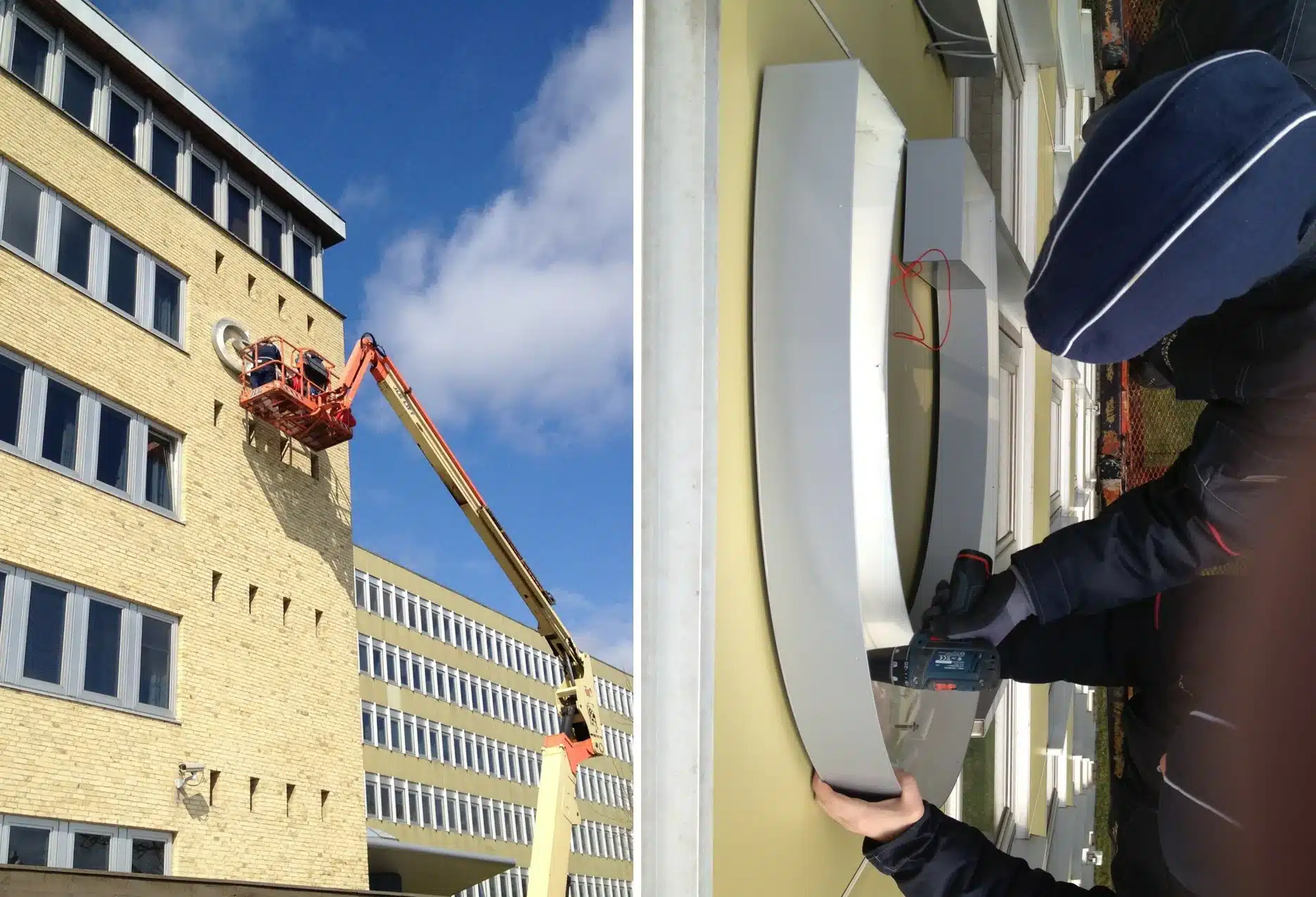 Projektet stillede høje krav til både præcision, materialevalg og montage, men resultatet taler for sig selv: Et markant og stilrent facadeskilt, der understøtter GEA’s visuelle identitet og skaber synlighed på lang afstand.